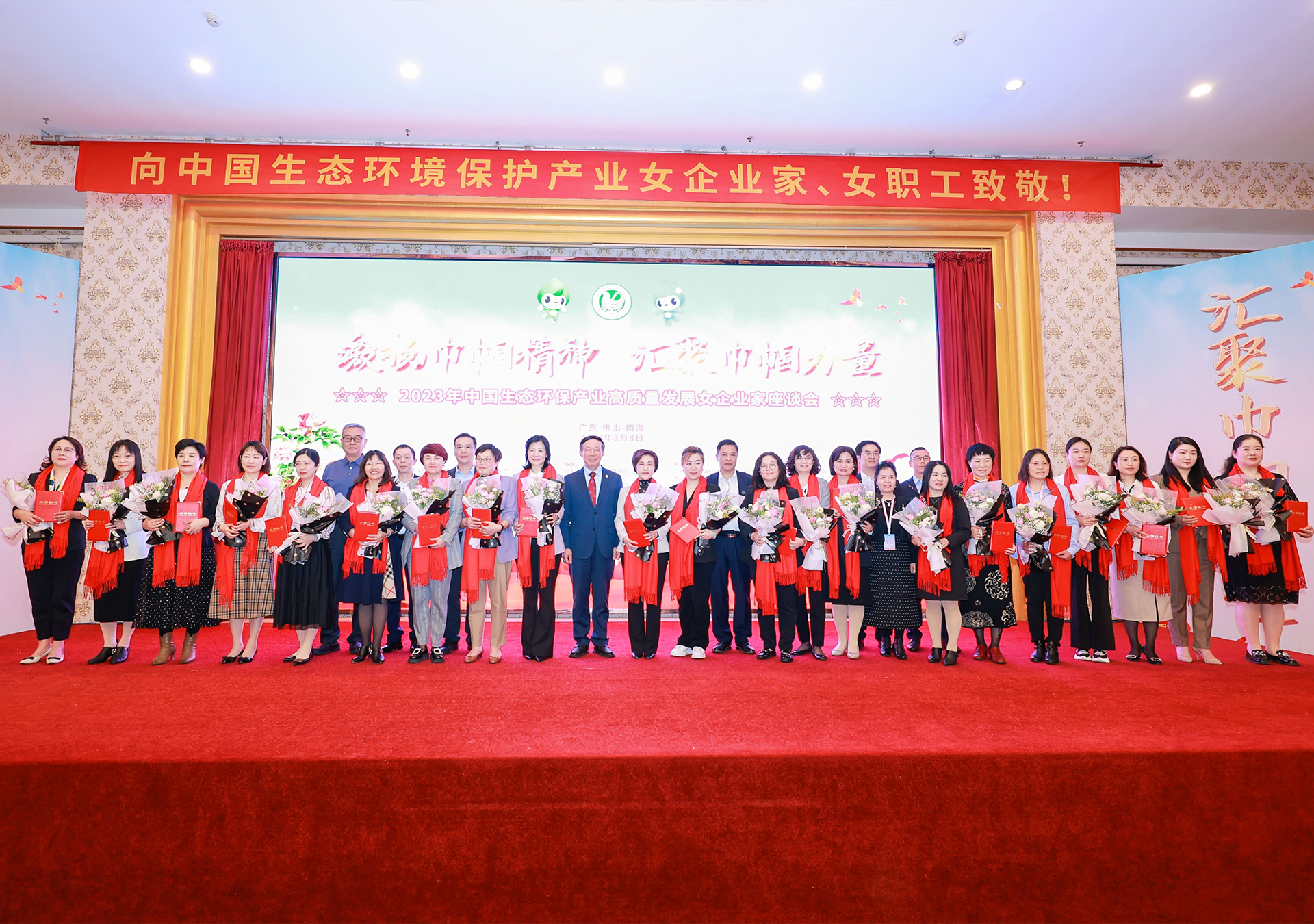 仲春时节,南粤大地,百花绽放。2023年3月8日,第113个国际劳动妇女节当天,由中国环境保护产业协会、广东省环境保护产业协会、佛山市妇女联合会联合主办的“2023年中国生态环保产业高质量发展女企业家座谈会”在佛山市隆重举行。中国环境保护产业协会党委书记、会长郭承站,广东省生态环境厅二级巡视员许金洲,佛山市人民政府副市长陈伟明等领导,以及来自全国18个省(区、市)的百余位女企业家和女职工代表出席了会议。