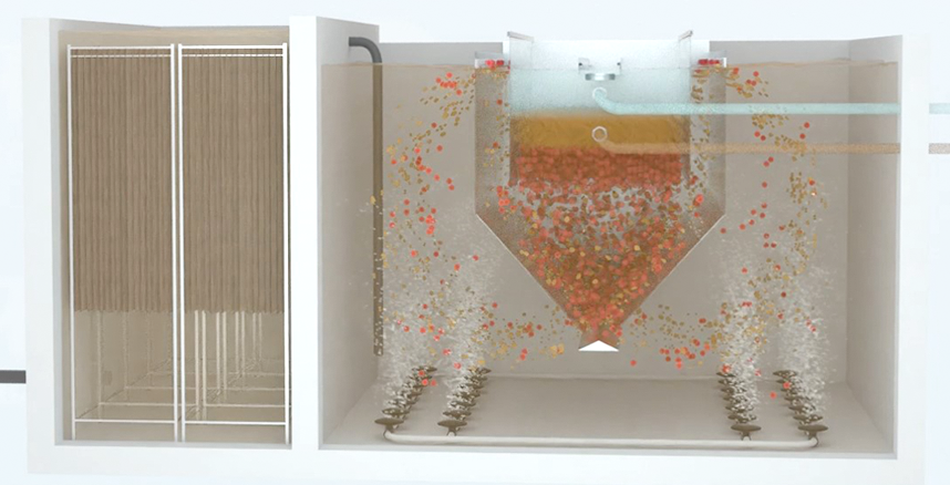 厌氧氨氧化技术(anammox)是20世纪90年代由荷兰Delft技术大学Kluyver实验室研发的一种新型自养生物脱氮工艺。厌氧氨氧化过程的功能细菌为厌氧氨氧化菌,俗称“红菌”,红菌以二氧化碳或碳酸盐作为碳源,以氨氮作为电子供体,以亚硝态氮作为电子受体,将氨氧化成氮气。与传统硝化反硝化工艺相比,此生物脱氮工艺无需添加碳源,可节省60%以上的曝气量。