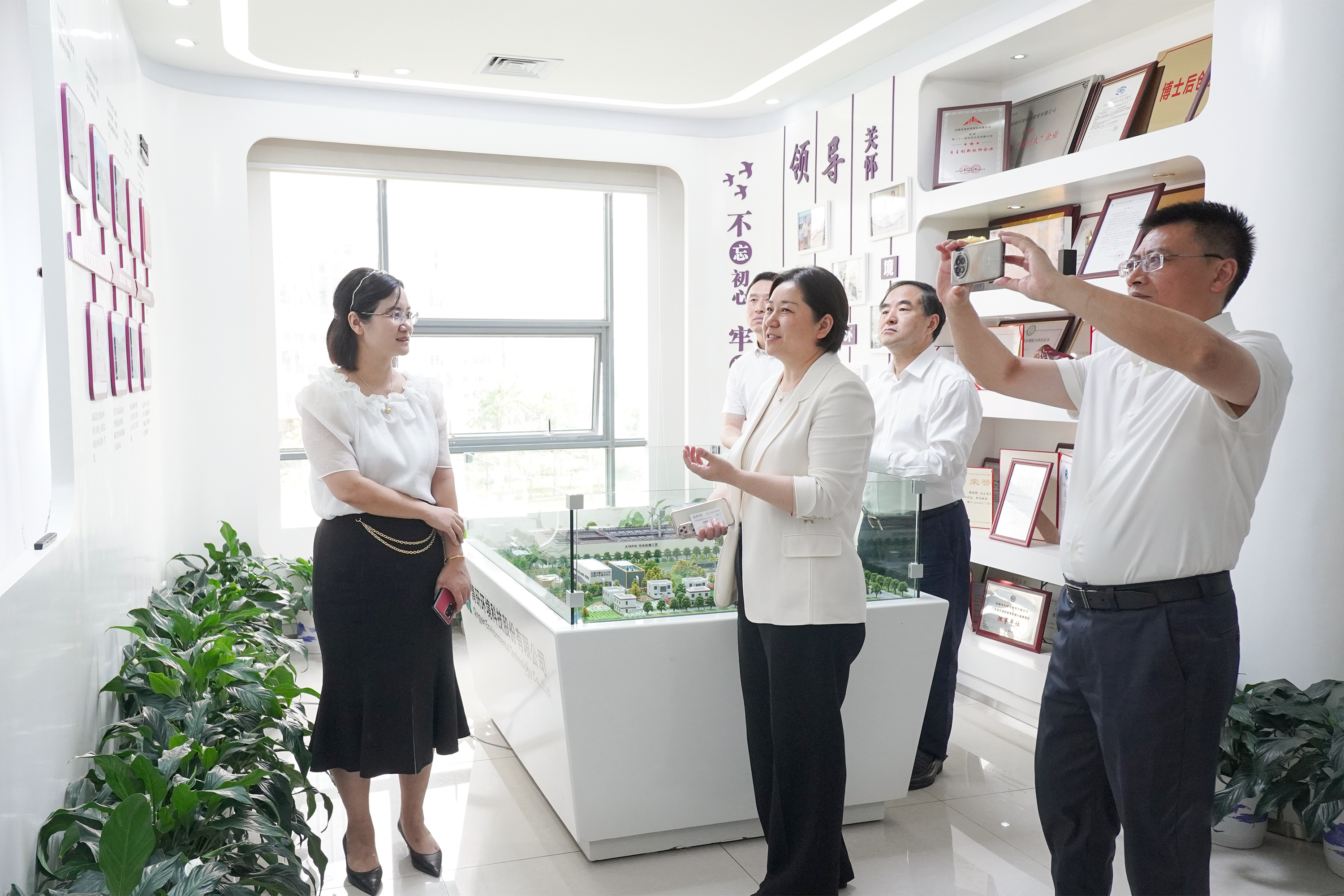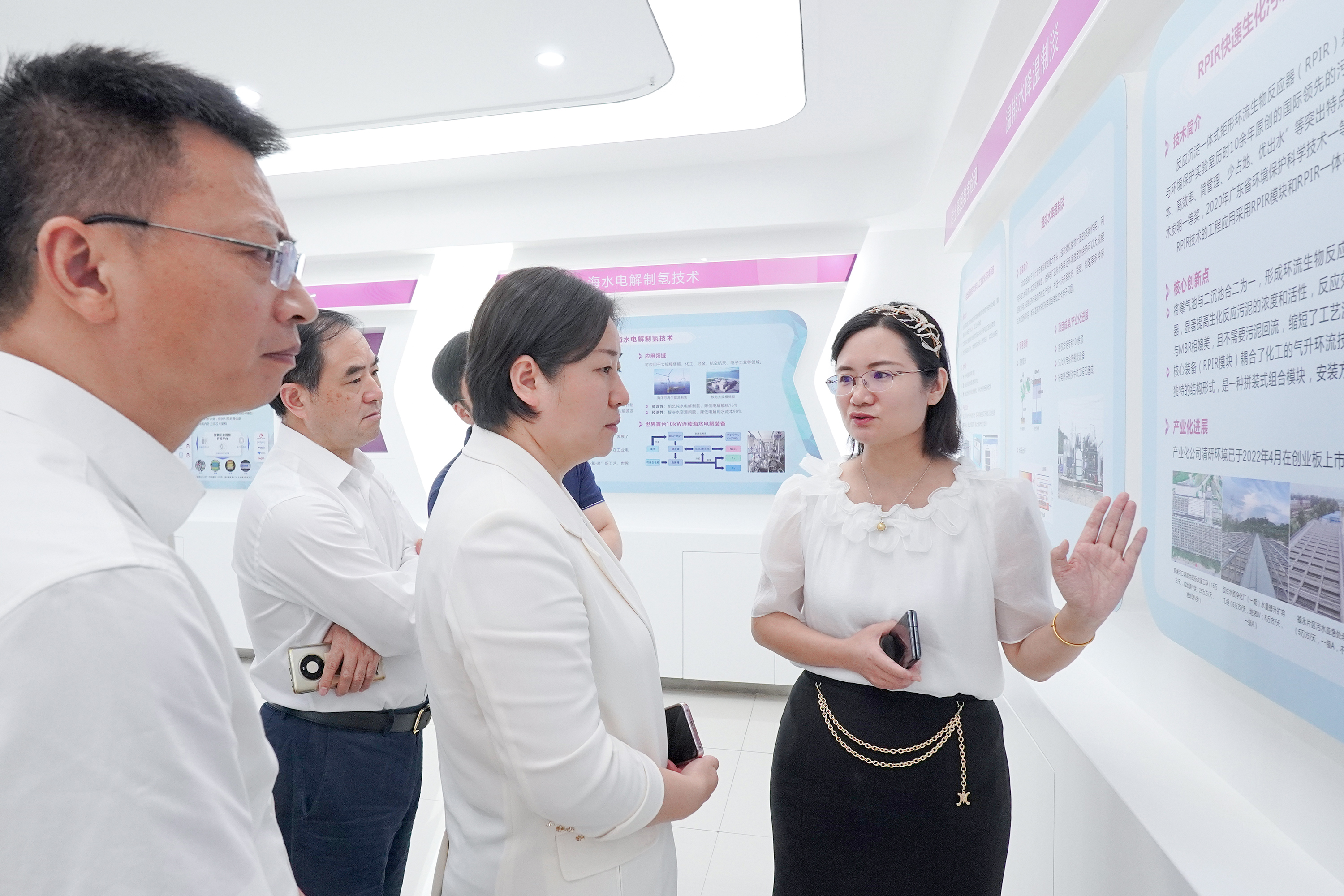 在谈到对未来水处理以及环保市场预判时,刘总讲道:“清研环境正在传统的环保行业内,通过技术创新,寻找新的业务增长点和利润增长曲线,进而打造专精特新产业集群。”此外,刘总还向刘英副市长介绍了公司的博士研发团队和技术储备。